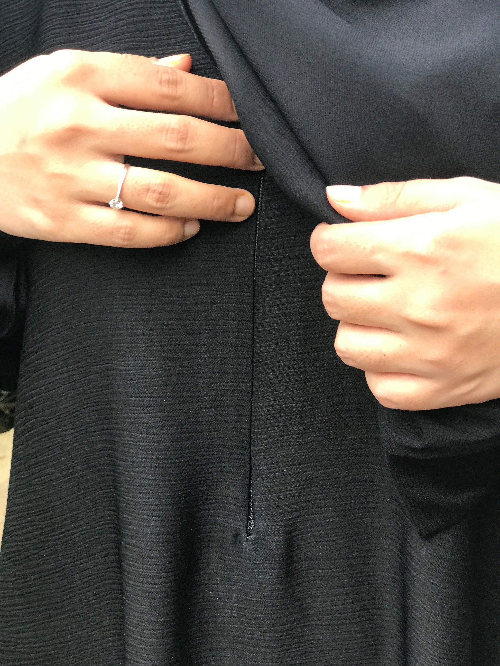 Nisa, is a basic, MUST HAVE Abaya for women who are busy but still needs to look presentable and modest. Nisa is made with soft and flowy Crinkle Fabric that requires minimal or no ironing. It is crease resistant too. Win!