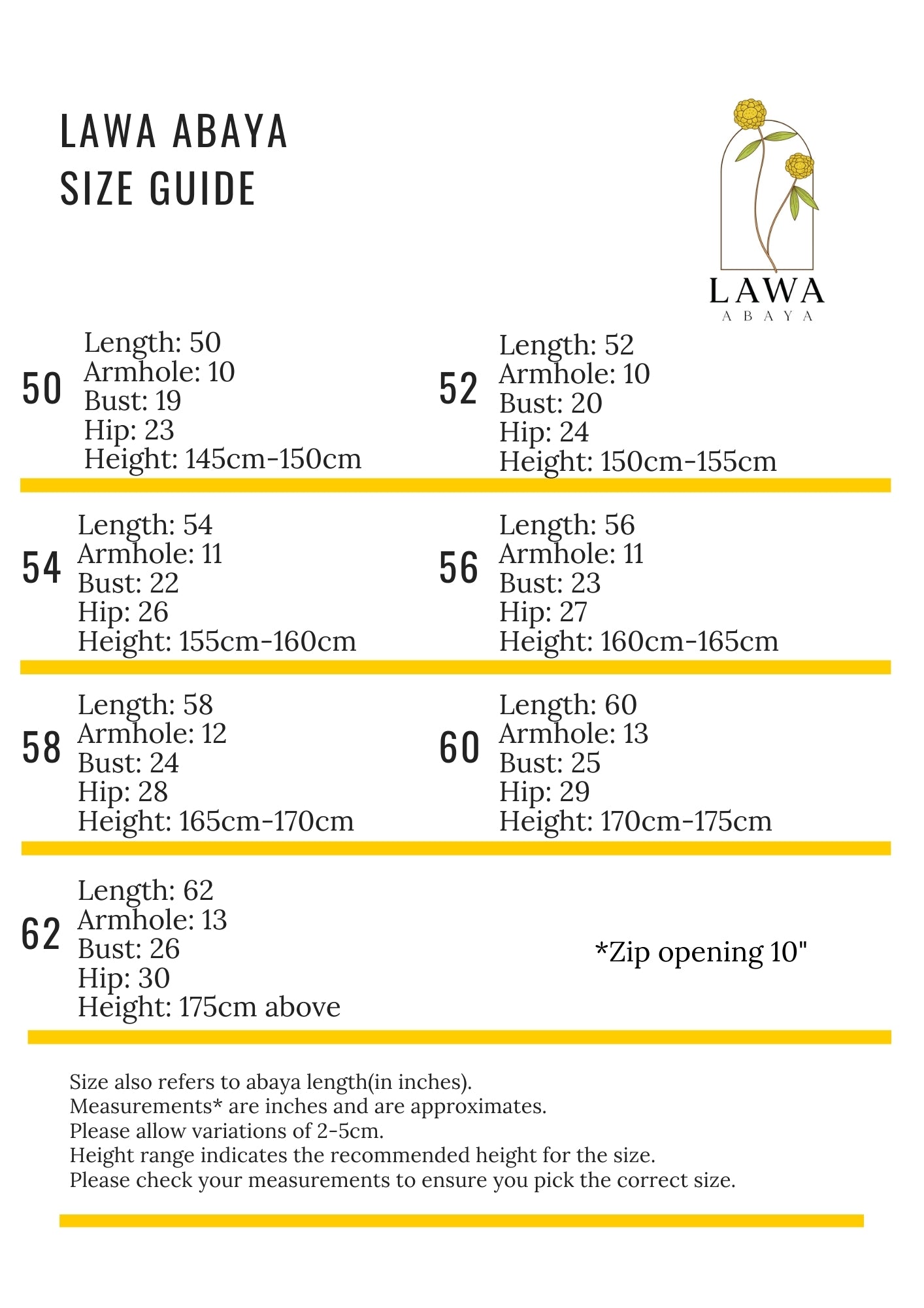 *Abaya is traditionally meant for layering therefore innerwear is advised.